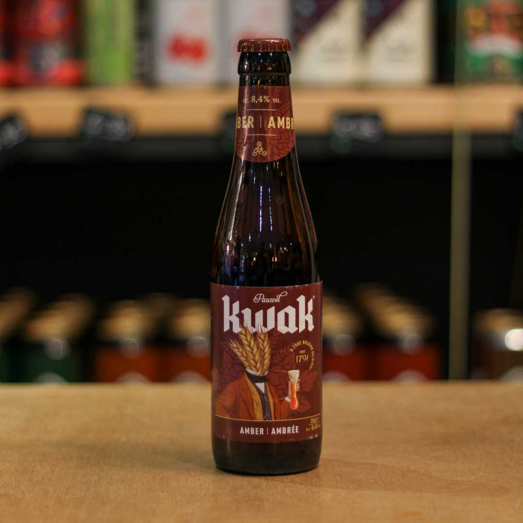 Kwak is a traditional strong Belgian amber ale, a perfect blend of malt and hops with a wonderful complexity of flavour. Original in its light amber colour with a full and velvety head, is this an ale with a beautiful explosion in the mouth of biscuit, banana, orange marmalade, hints of caramel and spices to end in a delicate bitterness