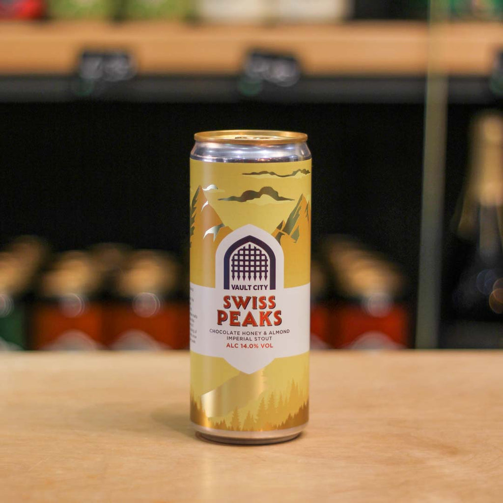 Swiss Peaks is our tribute to everyone’s favourite mountainous chocolate. This decadent imperial stout combines a layered bill of chocolate, pale and amber malts with smooth oats, cacao nibs and a touch of soft honey. It finishes with a gentle dusting of almond flavours, like fresh snow settling on a Swiss alpine peak.