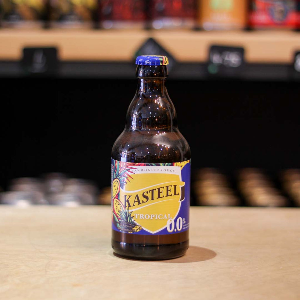 Kasteel Tropical 0.0 serves tropical vibes, without alcohol. The link to the original Kasteel Tropical is unmistakable: a vibrantly golden specialty beer with a full foam head and a tropical flavour palette. The scent of passion fruit fronts a refreshing non-alcoholic speciality beer, brewed with mango, passion fruit, peach and pineapple.